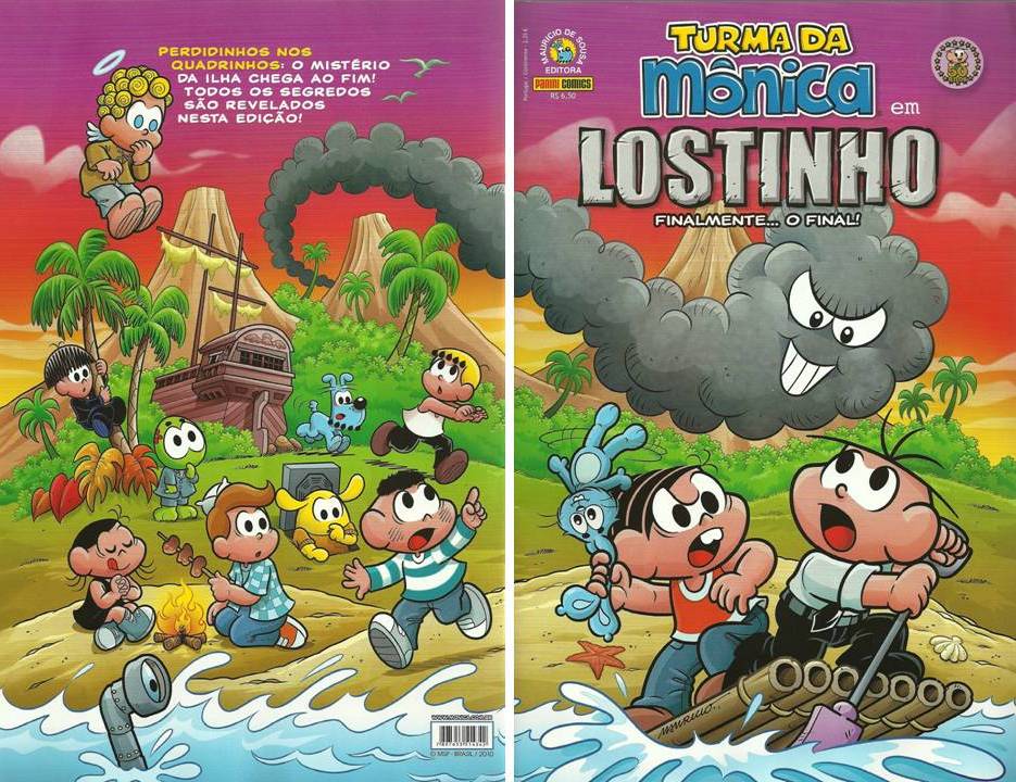 É uma sátira de Lost. Na época que o gibi foi lançado a série estava começando a terceira temporada, então a revista abrange até onde se sabia na época. Depois quando acabou, foi lançada uma segunda versão atualizando a história. O que acontece aqui: é a história de Lost, onde cada personagem interpreta um dos personagens da série. O Cebolinha é o Jack, a Mônica é a Kate, e assim por diante. A conclusão para alguns mistérios da série foram adaptadas para o universo da turminha. Por exemplo, o urso polar na verdade é só o gato da Magali. O monstro de fumaça aqui é só o Zé Luís vestido de dinossauro, e Os outros são personagens esquecidos do passado. O que é legal pra mim como fã tanto de Lost quanto da Turma da Mônica, é ver os dois juntos numa sátira. Ah, e aquele Bugu, o cachorro careca amarelo que anda com o Bidu, ficou perfeito no papel de Locke. E tem espaço até pra uma teoria do que causou o acidente: o Cebolinha diz que foi o peso da Mônica.
